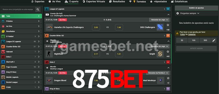 O 875bet oferece uma grande seleção de opções de apostas em e-sports com probabilidades competitivas